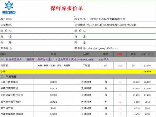 100平果蔬保鮮冷庫總價預算,如何計算價格?