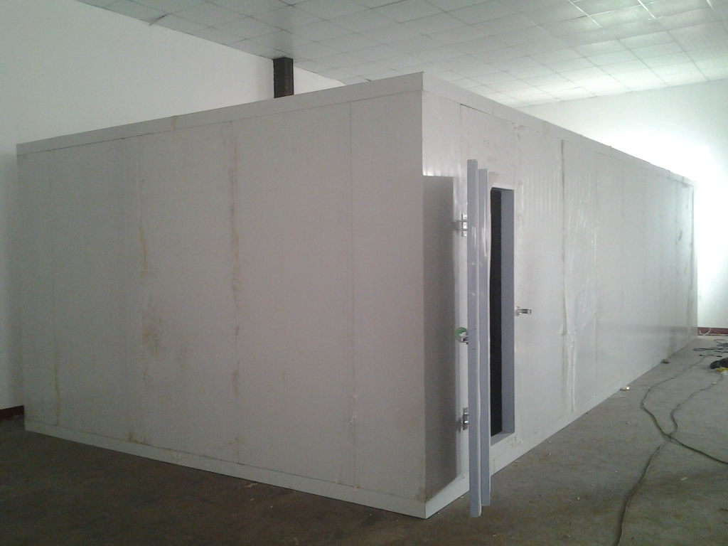 組合式:兩個或以上冷庫共用相鄰庫體部分,在相鄰庫體可開門連通也可的單獨開門,獨立使用,這種結(jié)構(gòu)在安裝時和搬遷時都需要較高的精度,但可以節(jié)約庫體隔熱材料的用量。