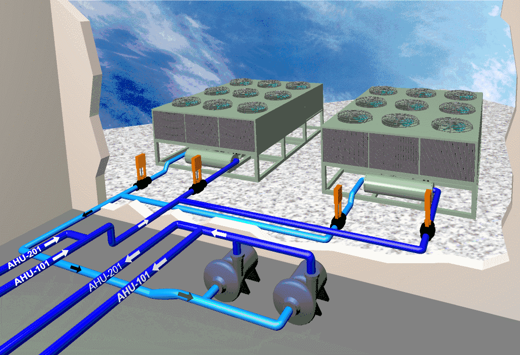 從系統(tǒng)結構上看:風冷式機組采用空氣冷卻方式(風扇降溫);水冷機組采用冷卻水冷卻方式,水泵加冷卻塔及循環(huán)管路對機組循環(huán)降溫。因此風冷機組只需風冷冷凝器即風扇即可。而水冷冷水機組需配冷卻塔,水泵、循環(huán)管路。從結構上水冷要復雜于風冷。